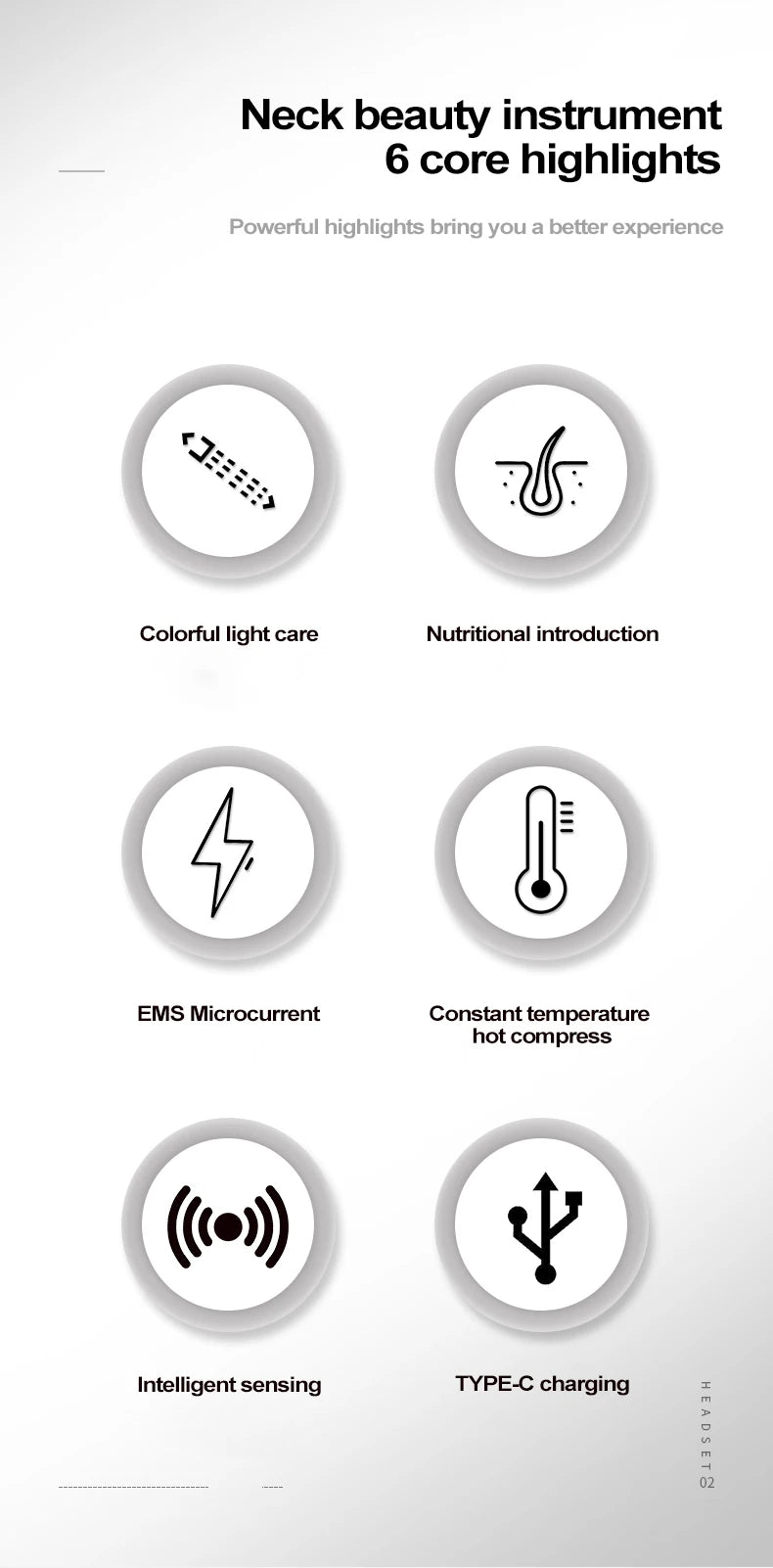 Encourages blood circulation and boosts elasticity with a warm red glow. Ideal for firming and toning sagging areas of the neck and jawline.